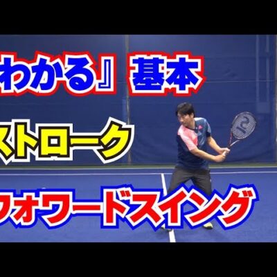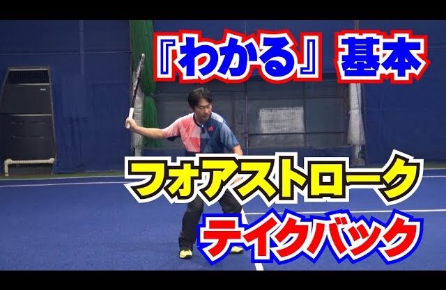 フォアハンドストロークではテイクバックの基本を知ることで、楽にスピン回転をかけることができます。テイクバックは、体の近くで高くラケットを構えます。体の使い方、ラケットの振り出し方を解説します。