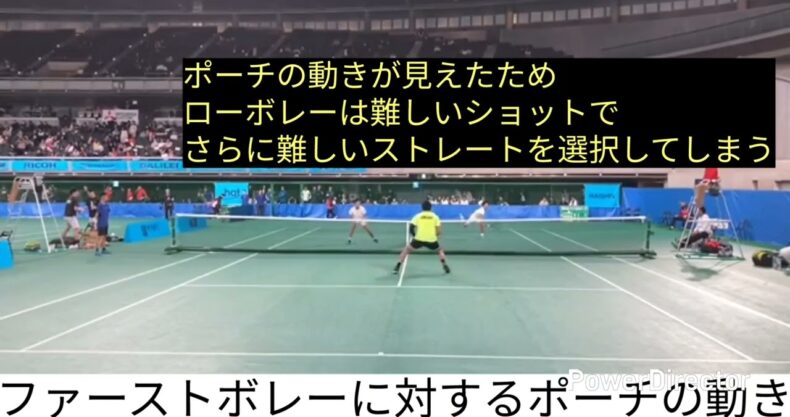 ファーストボレーに対してのポーチの動き