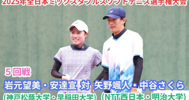 2025年 全日本ミックスダブルスソフトテニス選手権大会 一般 5回戦 岩元望美・安達宣(神戸松蔭大学・早稲田大学) 対 矢野颯人・中谷さくら(NTT西日本・明治大学)