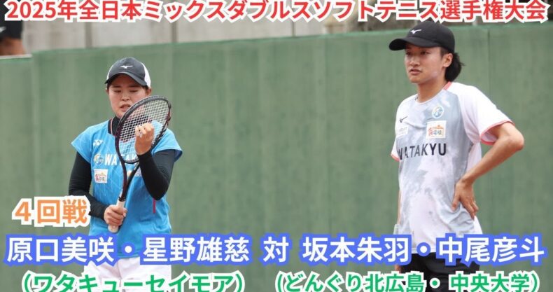 2025年 全日本ミックスダブルスソフトテニス選手権大会 一般 4回戦 原口美咲・星野雄慈(京都 ワタキューセイモア) 対 坂本朱羽・中尾彦斗(広島 どんぐり北広島・日本学連 中央大学)