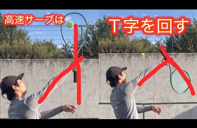 フラットサーブはT字でトップスピンをかける