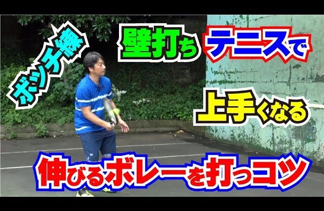壁打ちを使った練習方法を紹介します。今回は膝を伸ばしながら打つことで、伸びのあるボレーを打つための練習方法の紹介です。