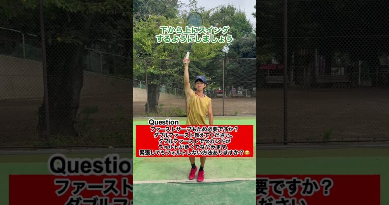 じんぺいコーチのワンポイント指導〜Qファーストサーブもため必要ですか?ダブルファースト教えてください。緊張してもフォルトしない方法ありますか?😂〜【ソフトテニス】#shorts