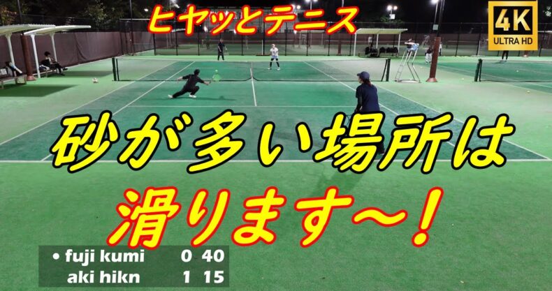 ヒヤッとテニス!砂が多い場所は滑ります!『中高年の健康テニス!TENNIS!』