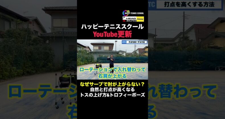 なぜサーブで肘が上がらないのか?自然と打点が高くなるトスの上げ方とトロフィーポーズ #ショート #short
