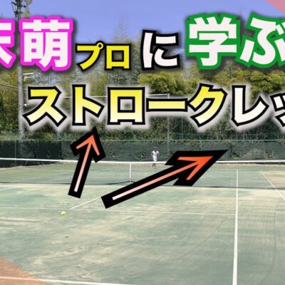 フォアハンドストロークの体とボールとの打点の離れ具合(距離)についてコメントしていきました。