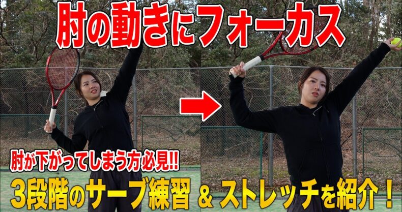 「肘の動きにフォーカスしたサーブの練習 3ステップ」です🎾