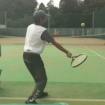 左足で地球を蹴って回転椅子を右回転させて段取りして、インパクトに向けて右足で地球を蹴って回転椅子を左回転させながらインパクトを通過して斜め前に開放しながら右肘の内側が顎の前に来て、左手にラケットの幹部が収まれば素晴らしい!