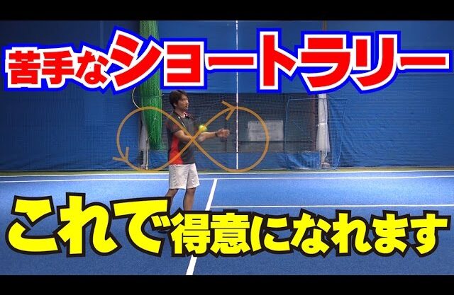 ショートラリーをすれば、テニスの実力が大体わかるとも言われています。手打ちではなく、体のひねり戻し、8の字のスイングを使って回転をかけて打つのがコツです。