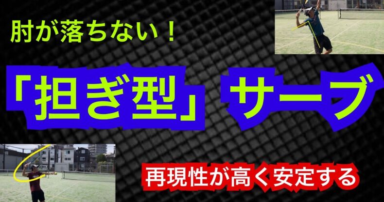 サーブを打つ際に「肘を落とさない」ために担ぎ型、もしくは担いでから打つサーブの解説動画になります。