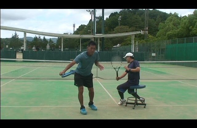 【テニスのコツ骨】ゆるテニス№709(テーマは回転椅子に座ってバックハンドスライス:マンツーマンで回転椅子に座ってバックハンドスライスストロークショットを打つと上手く行きました)