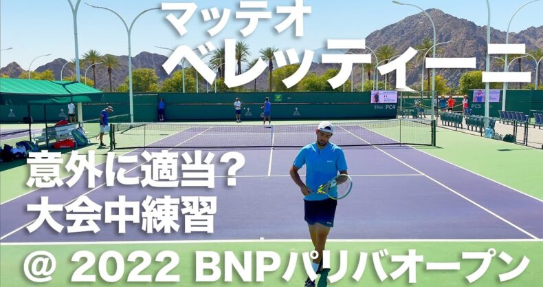 2022年3月にカリフォルニアのインディアンウェルズで開催された BNPパリバオープンでのマッテオ・ベレッティーニ選手のサービス練習+ストローク練習少し。