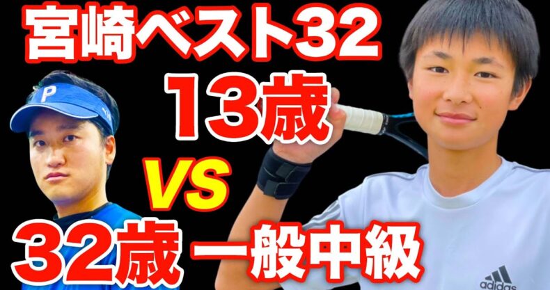 13歳の中学生と中級サラリーマンが試合してみた!これが大人のテニスです