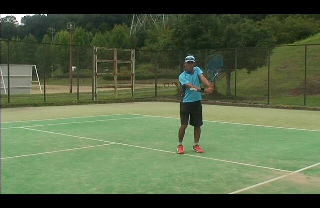 鍵はしゃがむ体勢と肩は入れてラケットも約90°引いて、両肘を出来るだけ伸ばして、手先は柔らかくして一瞬ラケットヘッドを落してから斜め前にスイング(ナイキマークスイング)してミスの少ないダブルバックハンドストロークが打てれば素晴らしい。