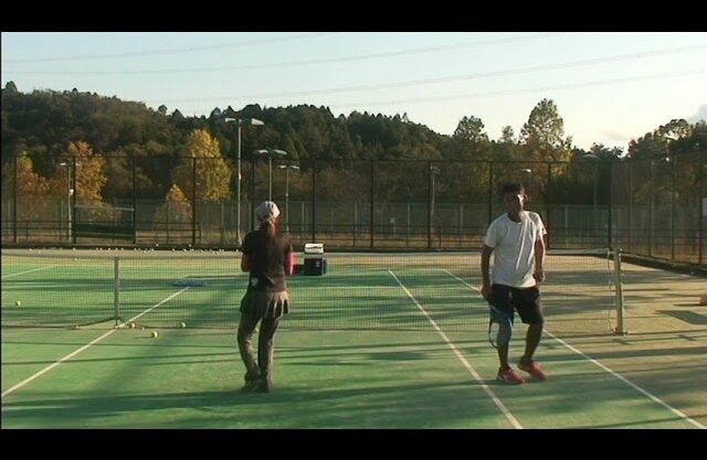前回のミドルボレーのレッスンに続いて、ダブルスでクロスのセンターに打つローフォアーハンドミドルボレーとロブボレーのコツを丁寧にレッスンしました。