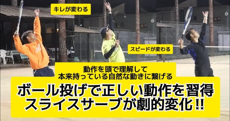 ボール投げで正しい動作を習得 スライスサーブが劇的変化‼