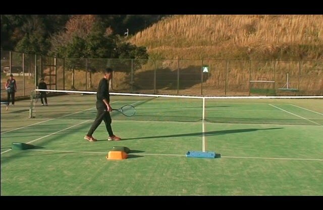 インパクトに向けて上体を少ししゃがむ感覚でボールにスライス回転を与えるのが大切です。ローボレーでは更にボールを右から左に横取りするスライド運動(ダブルスライス回転)が出来ると更に安定してネットもせずに3か所のコースに送れると、相手のバック側に少し隠し味で逃げて行くので、打ち難くなるので、このボールを横取りするローボレーのスイング感覚(足の運び)を習得できれば素晴らしい。
