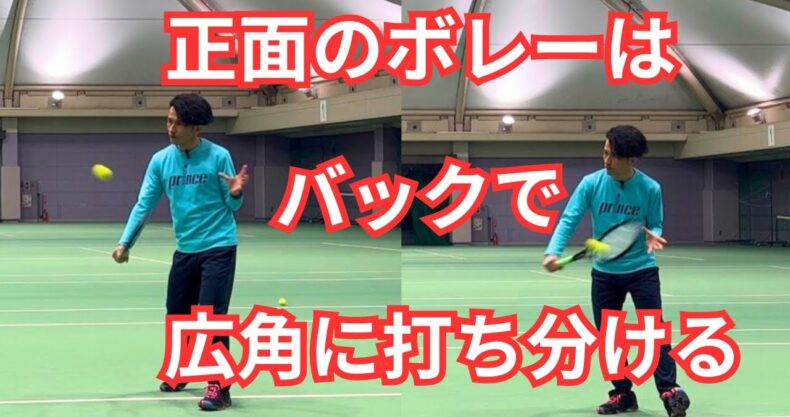 正面のボレーはバックで広角に打ち分ける