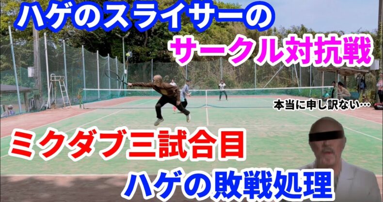 ハゲのスライサーのミックスダブルス対決!【テニス/ダブルス 】(tennis/doubles)サークル対抗戦(VSチームまみすけ)