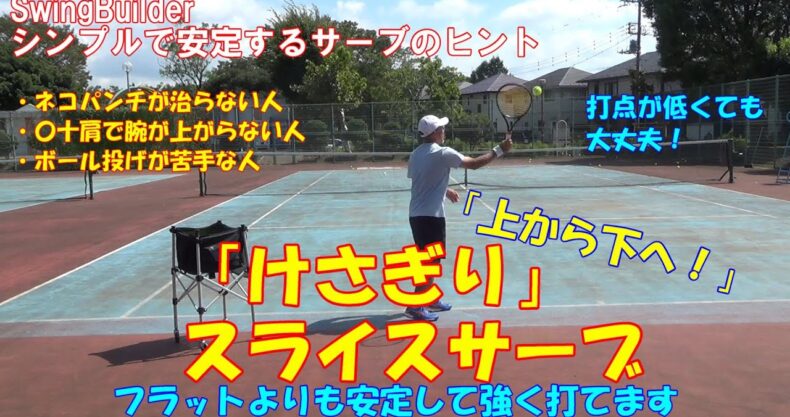 【テニス シンプルで安定するサーブのヒント】けさぎり(袈裟切り)サーブ!低い打点からのスライスサーブです!ネコパンチ系の人はみんなこれやればいいのに・・・楽ちんです