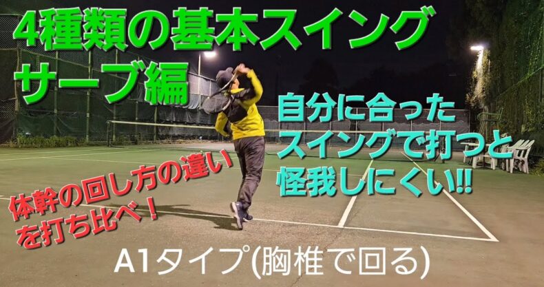 テニス:4種類の基本スイング【サーブ編】体幹の回し方の違いを打ち比べてみました!