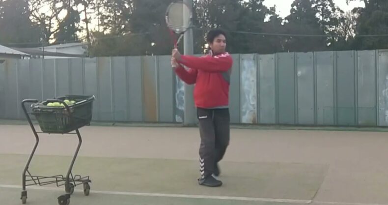 ~両手バックハンドストローク~「腕とラケットをボールに向かわせる打ち方」