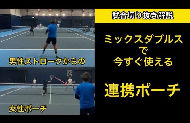 【試合切り抜き解説】男性ストロークからの女性ポーチのパターンを解説しました【ミックスダブルス】
