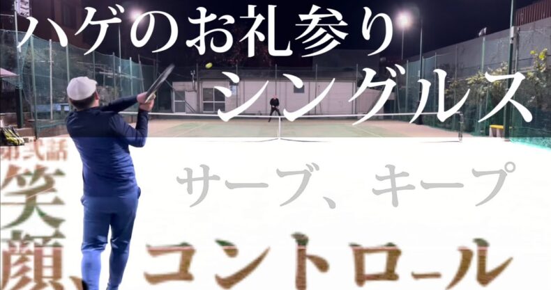 ハゲのお礼参りシングルス対決!サーブキープ出来るのか!【テニス/シングルス】笑顔のコントロールタワー編