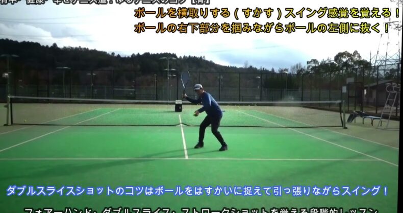 【テニスのコツ骨】ゆるテニス№1181(テーマは安定したダブルスライスフォアーハンドストロークをマスターする:ダブルスライスフォアーハンドスライスショットのコツを段階的に指導するレッスンを行いました)