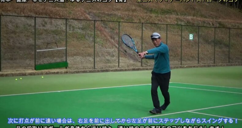 【テニスのコツ骨】ゆるテニス№1203(テーマは足ニスでボールが弾む前に速く段取りして斜め前にインパクトスペースを造って気持ち良く打てるフォアーハンドストロークのコツ)