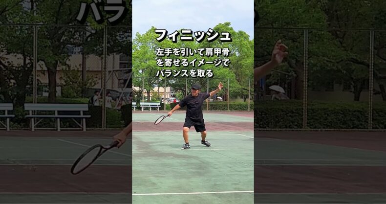 🔸打球後、左手を引くこと(肩甲骨を寄せるイメージ)で胸が前を向き過ぎないようにブロックする