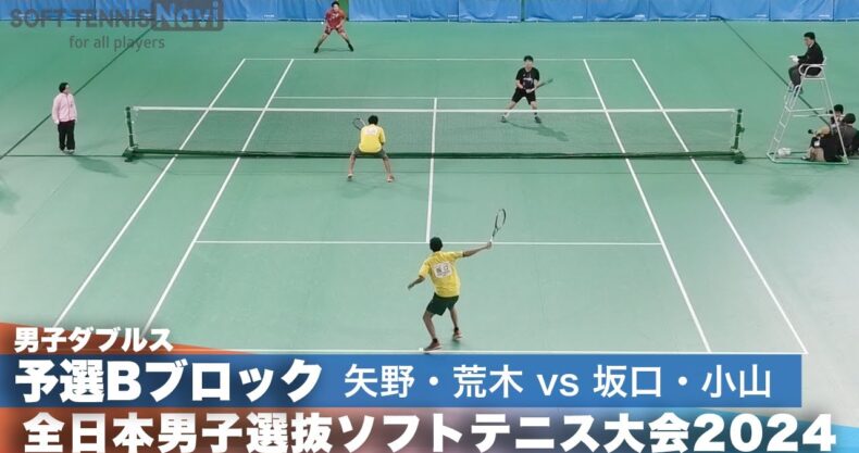 2024全日本男子選抜ソフトテニス大会 ダブルス予選Bブロック 矢野颯人・荒木駿ペア(早稲田大学・ヨネックス)vs坂口生磨・小山寛晴ペア(尽誠学園高校)