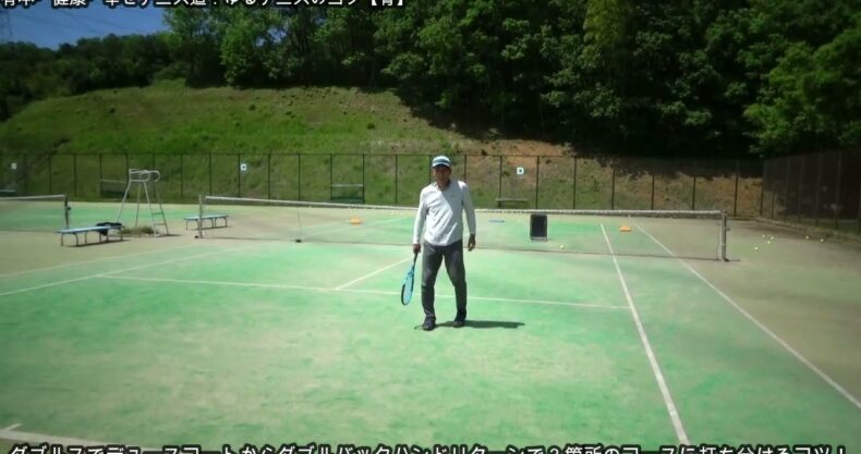 【テニスのコツ骨】ゆるテニス№1289(テーマはダブルスでデュースコートでダブルバックハンドリターンでラケットは引かずに肘を引いて3箇所に安定して打つコツ)
