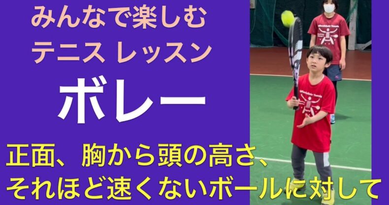 みんなで楽しむテニスレッスン ボレー 「正面、胸から頭の高さ、それほど速くないボールに対して」