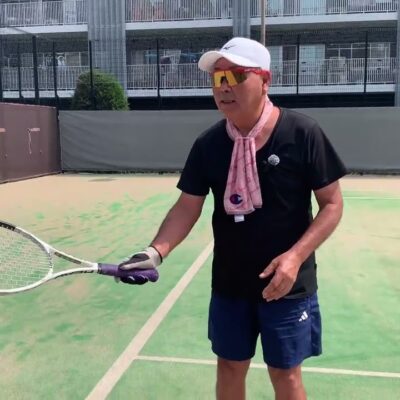 グリップはショットによってやや変えていますが、基本的にフォアはイースタンとセミウエスタンの間。バックはバックハンドイースタンです。