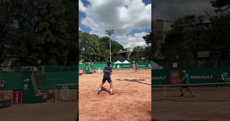 レッドクレーコートでラリーするジュニア【#shorts】