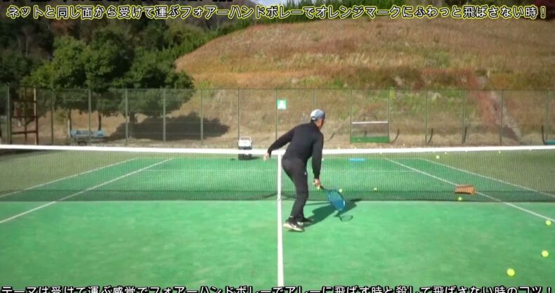 フォアーハンドボレーで受けて運ぶ感覚で逆クロス方向に大きく飛ばす時と逆ショートクロスに殺して飛ばさない時のコツをお伝えします!