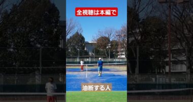 油断する人 #テニスサーブ #tennisリターンは油断するとこうなります。集中しましょう。#テニスサーブ #tennis…