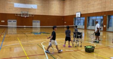小学生硬式テニスのサーブ練習ななっちで昨年スタートした硬式テニス教室では、小学生低学年の皆が練習に励んでいます。小さな体で、細い腕でサーブを打つ姿は…