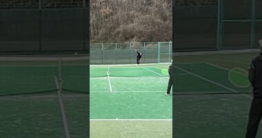 野球のピッチャーをイメージして打ったサーブ#全身をフルに使って脱力して打ったサーブ…