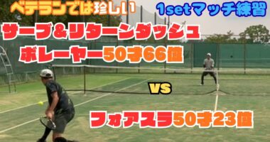 【ベテランテニス】サーブ&リターンダッシュボレーヤー66位との1set練習試合#ベテランテニス#テニス#サーブアンドボレー#フォアスライス#リターンダッシュ…