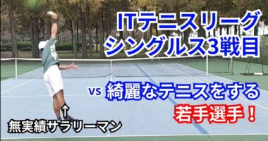 【半年ぶりの再戦】ITテニスリーグ3試合目!数少ない歳下との対決!(シングルス)【テ…