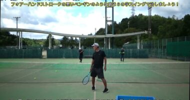 【テニスのコツ骨】ゆるテニス№1370(テーマは男性の生徒さん2人にフォアーハンドストロークで逆クロスに打って悪い癖を自覚してアドバイスで改善して安定するコ…