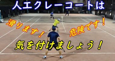 中高年!ダブルステニス!『人工クレーコートは滑ります!危険です!』悪評高い人工クレー・・・( ;∀;)滑る滑る!危険なコートです。今回ひっくんは滑っ…