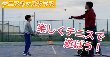 テニスキッズ『①ボールつき→②キャッチボール→③ストローク練習』