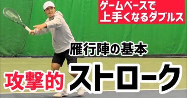 【相手を押し込む攻撃的ストローク】テニス 雁行陣の後衛が好きになるストロークを覚えよう「ゲームベースで上手くなるダブルス」ダブルスで相手を押し込…