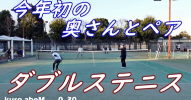 光が丘ダブルステニス!【今年初の奥さんとペア!?】両隣のコートで学生さんたちが練習しておりました。テニスサークル?うるさいのなんの(笑)ひっくんは奥…