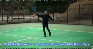 【テニスのコツ骨】ゆるテニス№1201(テーマは足と体幹を意識したバックハンドストロークのレッスンをお伝えします)足と体幹を意識したバックハンドスト…