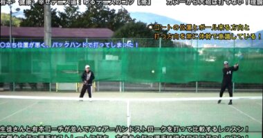 【テニスのコツ骨】ゆるテニス№1180(テーマは生徒さんと有本コーチが同じボールをフォアーハンドストロークで打って比較する:マンツーマンレッスンで2人のフォ…