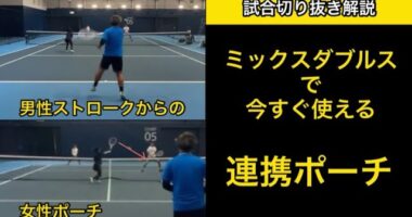 【試合切り抜き解説】男性ストロークからの女性ポーチのパターンを解説しました【ミックス…